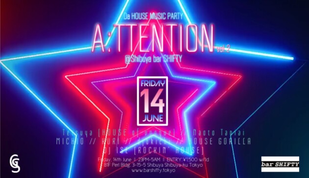 渋谷SHIFTYのHOUSE MUSICパーティー“A:TTENTION(エイ・テンション)”。