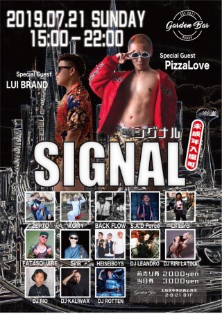 「SIGNAL」 ▼日程 7.21.Sun ▼時間 15:00〜22:00 ▼場所 @Garden Bar ▼入場料 前売2000 当日2500