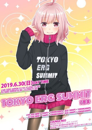 TOKYO ERG SUMMIT、それは2012年から始まったユーザー側からPC美少女ゲームの音楽カルチャーを推進するプロジェクト。シンガー中心のLIVE SIDEとDJが盛り上げるDJ SIDEの二部構成、様々な要素で盛り上げる美少女ゲーム系音楽イベントです。"DJ CULTURE "や"CLUB PARTY"の文化も含めたファンアートや音楽文化も含めて現場から発信します。