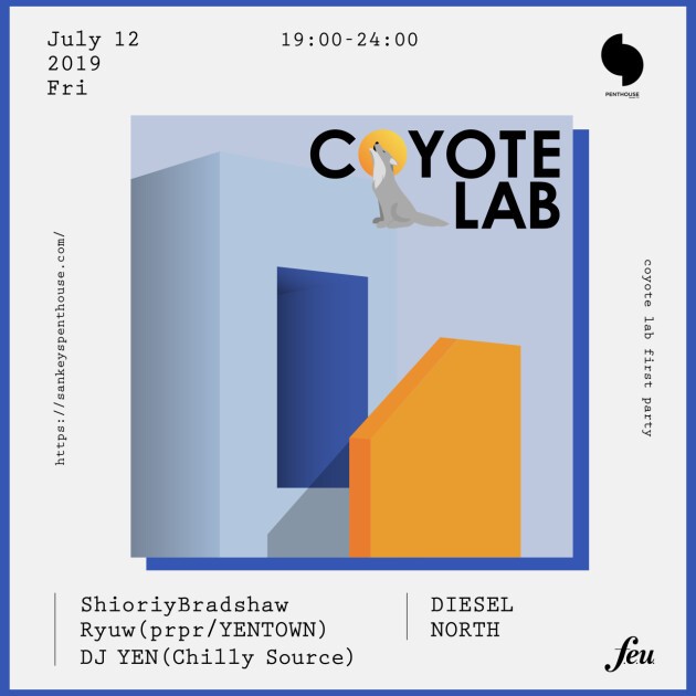 第一回目のCoyote Labのゲストは都内のみならずアジア圏、海外で活躍しているShioriyBradshawやBASS MUSIC, TRAP, HIP-HOPプロデューサー prpr/YENTOWNからRyuw、Chilly SourceからDJ YEN、そして都内で活躍しているDIESEL、NORTHを迎え、最先端の音楽を届けます。