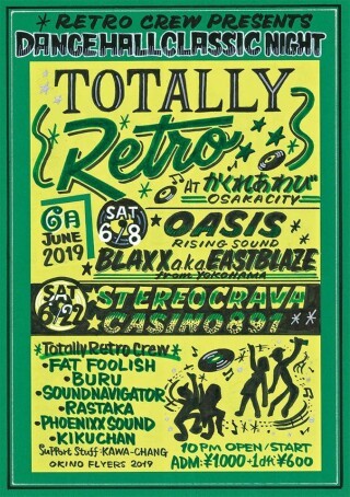 OKINO FLYERデザインのTOTALL RETROオリジナルTシャツ(S.M.L.XL)2000円で販売中