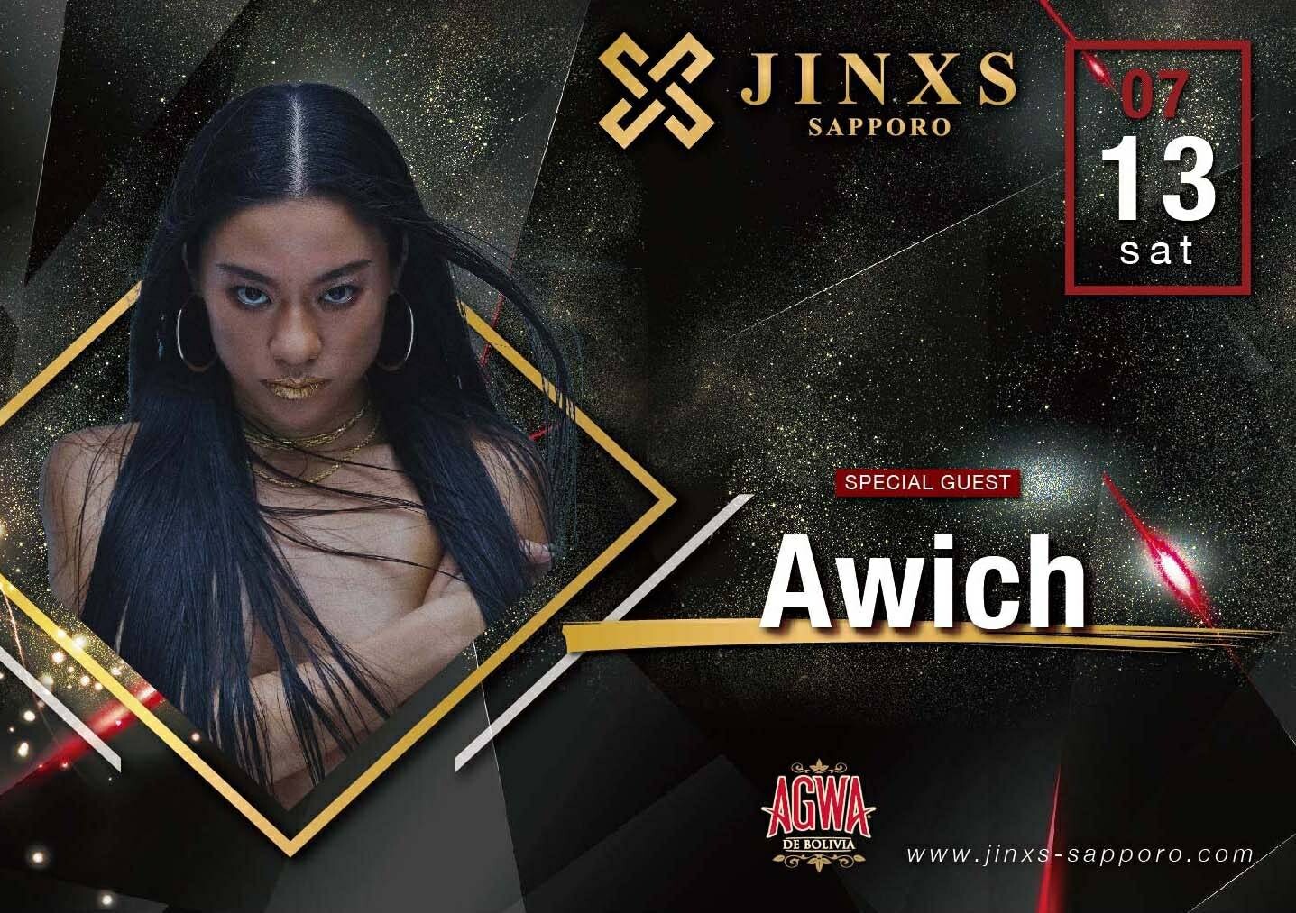 DJがこぞって絶賛する歌姫ラッパー! 沖縄県生まれの野生的でツヤのある歌声のAwichがいよいよJINXSに登場! 札幌でも毎回ライブは超満員とまさに大人気の歌姫! 間近で体感できる大チャンス!