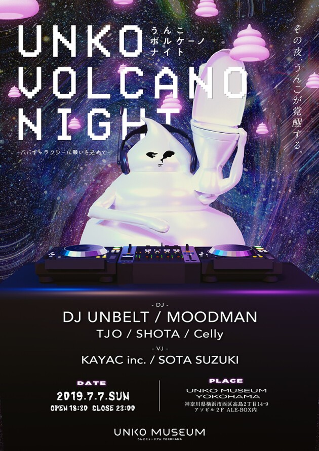 話題の体験型展示「うんこミュージアム YOKOHAMA」で、MOODMANやTJOといった人気DJが奏でる音に酔いしれる特別クラブイベントを開催。「うんこミュージアム YOKOHAMA」でしか体験できない七夕の夜をお楽しみください。