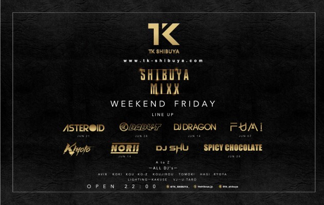 毎週末開催!TK SHIBUYAが誇る週末看板パーティー!