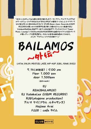 「日本にいながら、いろんな国の音楽が聴ける」をテーマにラテン、サルサ、クンビアなどのワールドミュージックでお馴染みの "BAILAMOS" の週末バージョン。