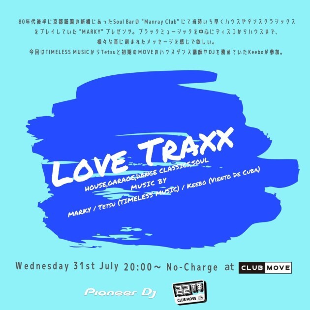 80年代後半に京都祇園の新橋にあったSoul Barの "Manray Club" にて当時いち早くハウスやダンスクラシックスをプレイしていた "MARKY" プレゼンツ。
