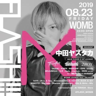 音楽家・プロデューサーである中田ヤスタカ唯一のウィークエンドレギュラーパーティーとして長きに渡りその名を轟かしている FLASH!!!。WOMB のレギュラーパーティとして、多くのオーディエンスと共にフロアを揺らしている。WOMB LOUNGE は keith 率いる “SALVAGE” チームの四つ打ちを中心に、ふとしたタイミングで J-POP や日本語の曲を織り交ぜる Party 感の出やすいフロアを展開!休憩のひと息やバッチリ音楽に乗りたい人でも滞在しやすい空間をお楽しみに!中田ヤスタカ、そして多様なダンスミュージックを響かせる個性豊かな DJ 達に是非注目してほしい。