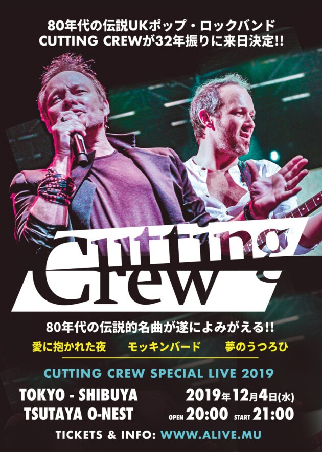 80年代のUKポップ・ロックバンド、カッティング・クルー(Cutting Crew)待望の来日公演決定!! 世界中で人気を博した彼らが、なんと約32年振りに日本のステージに立つ!!