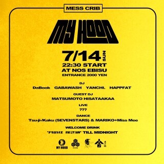 メッセンジャー、ダンサー、スケーターと異なった種類のカルチャーをミックスアップしてきた"MYHOOD" 7月14日に開かれるイベントは飲食店の”恵比寿 NOS”でオールイベントを行う。