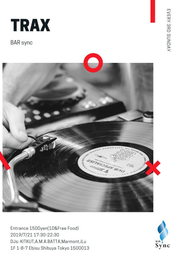 毎月第3日曜日にサンデーアフタヌーンのDJミュージックラウンジ「TRAX」始動。恵比寿駅 徒歩1分のBar Syncにて開催します。