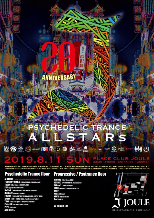 サイトランスDJが一挙に集い、盛大にclub JOULEの20周年を祝います。