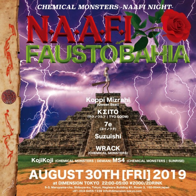 そんなNAAFIをMexican Jihadとともに統括するFausto Bahiaが約2年半振りにCHEMICAL MONSTERSに登場!「新しいものは何でもワクワクする」という信念を持つFausto Bahiaによる世界最先端のNAAFIサウンドをその身を持って体感してほしい。