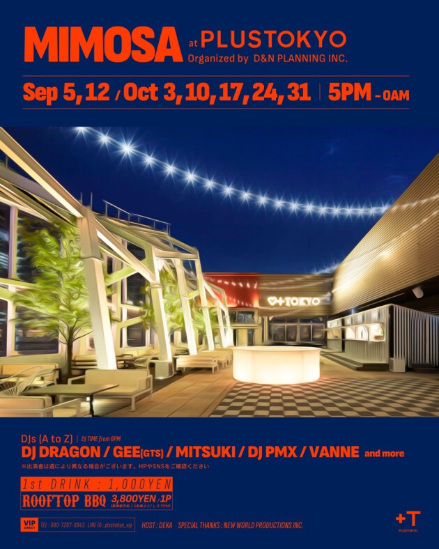そのMIMOSAが話題の新ベニュー『PLUSTOKYO』のルーフトップで当時と同じ毎週木曜日に復活をする。