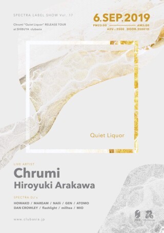 SPECTRAから、衝撃のデビューを飾ったChrumiによるニューアルバム『Quiet Liquor』のリリースを記念した、17回目のレーベルショーを渋谷ASIAにて開催。