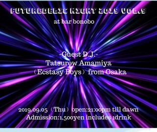 今回はゲストD.J.に大阪から天宮辰朗(Ecstasy Boys)を迎えての開催。そして、Atsu(BLiB)も久し振りの参加。
