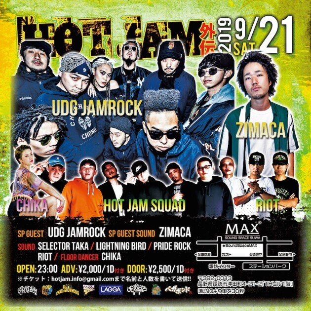 #2019 #HOTJAM外伝 #信州 #長野 #諏訪 #SoundSpaceMAX #Reggae #HipHop #RnB #Dancehall #UDGJAMROCK #ZIMACA #SoundSession #LiveShow #Dance #selectorTAKA #LightningBird #PrideRock #RIOT #Chika #StarMax #Acidentertainment