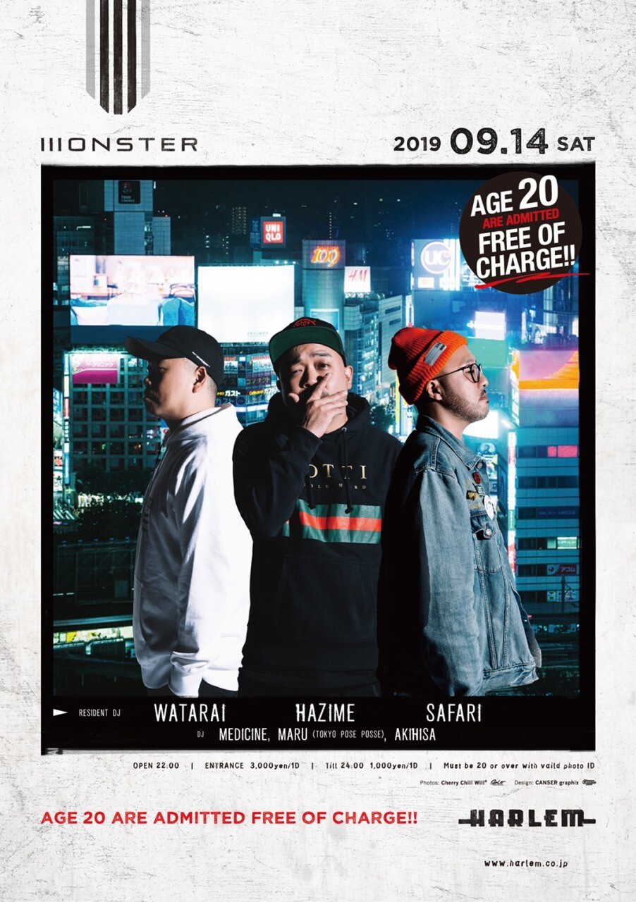 日本のHIP HOP SCENEを代表するDJが一堂に介する土曜日"MONSTER"。