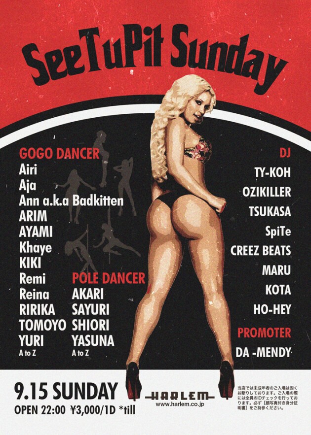 DJ: TY-KOH, OZIKILLER, TSUKASA, SpiTe, CREEZ BEATS, MARU (TOKYO POSE POSSE), KOTA, HO-HEY