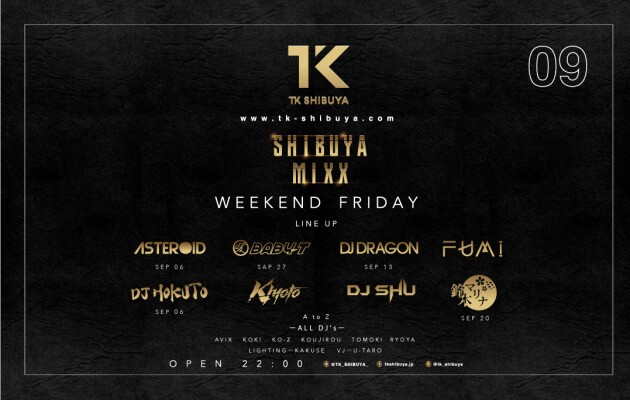 毎週末開催!TK SHIBUYAが誇る週末看板パーティー!