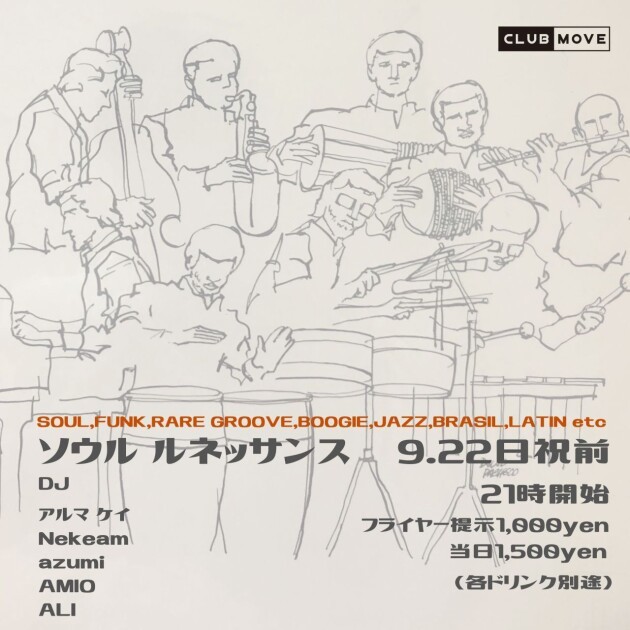 フライヤー提示 ¥1,000 当日¥1,500 (各ドリンク別途)