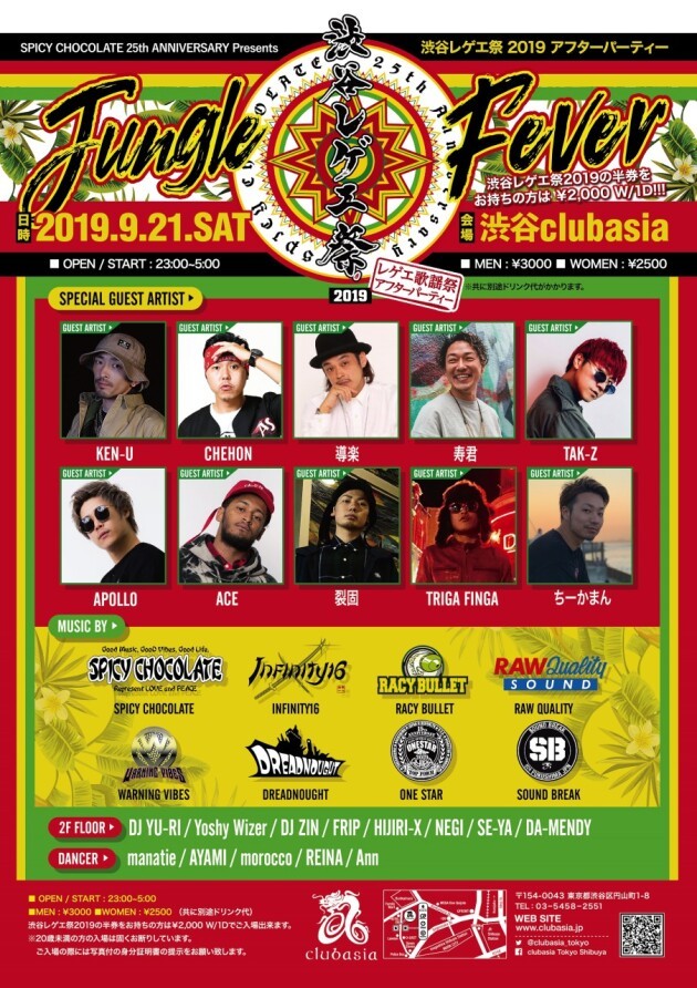 今年も渋谷レゲエ祭のアフターパーティーは渋谷・クラブ・エイジアで!!!