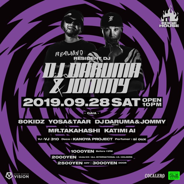 今年デビュー11年目を迎え、ロック、ダンスなどシーンの垣根を越えて活躍を続け、7月10日に新曲「Don’t Stop」をリリース。約3年ぶりのフル・アルバムに向けて始動した80KIDZ。向井太一とMINMIを客演に迎えたデビュー・シングル「Slave of Love」、親交の深いSIRUPを迎えた2ndシングル「Fever」と立て続けにバイラル・ヒットを発表してきたYOSA & TAAR。共に「MISSION@Contact Tokyo by 80KIDZ」「MORERN DISCO@SOUND MUSEUM VISION by YOSA&TAAR」といった人気主催パーティを持つ両ユニットが、DJ DARUMA&JOMMY主催のEDGE HOUSEに殴り込み?!をかける異種格闘技戦。エレクトロニックミュージックとポップカルチャーの両面にアプローチする豪華アクトをゲストに迎え、最先端のトレンドがギュッと詰まった高濃度な夜をお約束する。