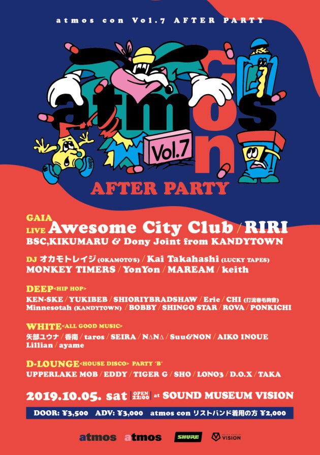 東京のスニーカーカルチャーを世界に向けて発信し続けるショップ 「atmos」は、2019年10月5日(土)に渋谷のヒカリエホールにてatmos主催のイベント『atmos con Vol.7』開催し、AFTER PARTYとしてSOUND MUSEUM VISIONで開催致します。