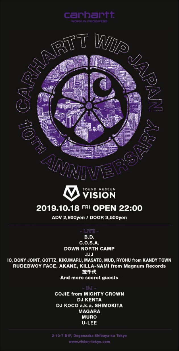 そんなCarhartt WIP Japan設立10周年Partyのファイナルを10月18日(金)、渋谷VISIONにて開催致します。