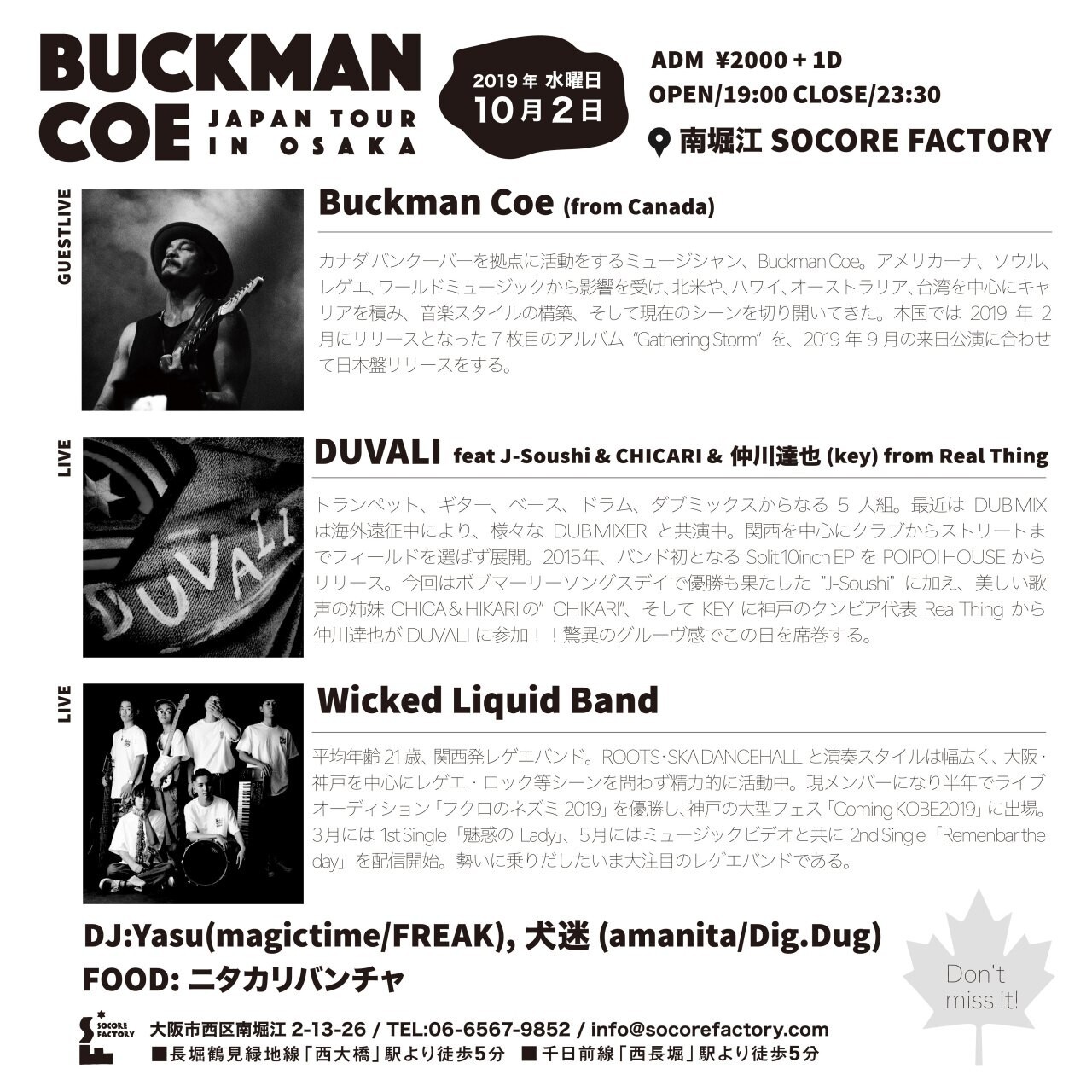 今回はボブマーリーソングスデイで優勝も果たした”J-Soushi”に加え、美しい歌声の姉妹CHICA & HIKARI の”CHIKARI”、そしてKEYに神戸のクンビア代表Real Thingから仲川達也がDUVALIに参加!!