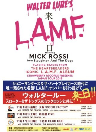 元NEW YORK DOLLSのジョニー・サンダース、ジェリー・ノーランと共にJOHNNY THUNDERS & THE HEARTBREAKERSを創った伝説のNYパンクロッカー、 ウォルター・ルーの来日公演が決定!!全世界のPUNK ROCKERに影響を与えまくった唯一のアルバムで大名盤「L.A.M.F.」ナンバーを演奏しにやって来る!