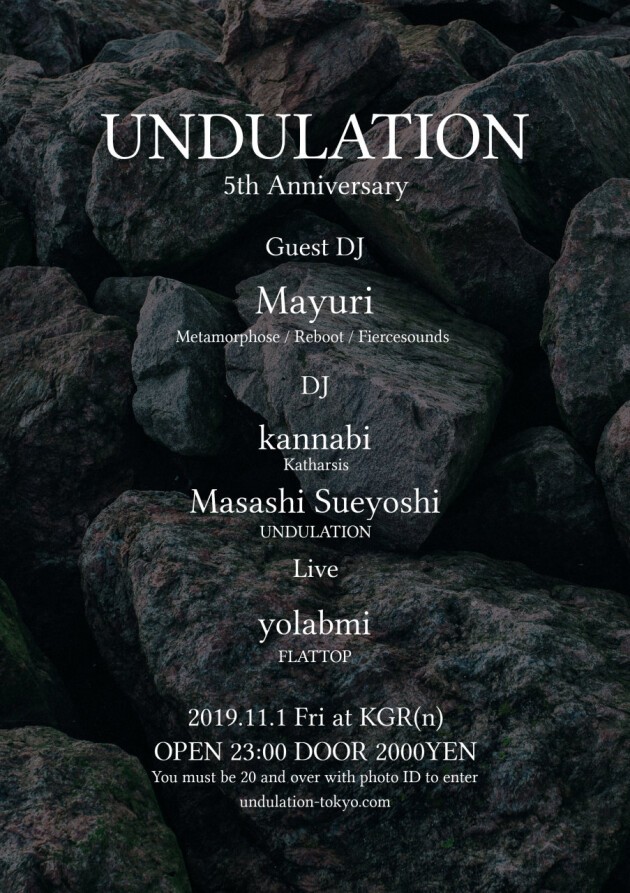 重く、黒く、DOPEな音を提供してきたUNDULATIONが5周年を迎える。ゲストには長年、日本のテクノシーンを牽引してきた女帝Mayuriの登場。