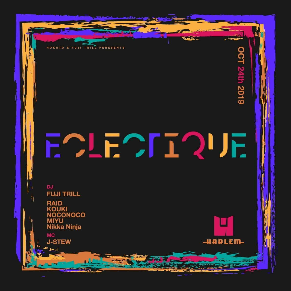 DJ HOKUTOが5年に渡り毎年2回のヨーロッパツアーを敢行する中で、アムステルダムで出会った今までのDJの常識を覆すDJスタイル“Eclectic”。そして、音楽のメッカヨーロッパで毎夜繰り広げられる、自由な音楽感と遊びのスタイルに衝撃を受け、そのパーティ感とDJスタイル再現するパーティとしてスタートしたのが『ECLECTIQUE』。