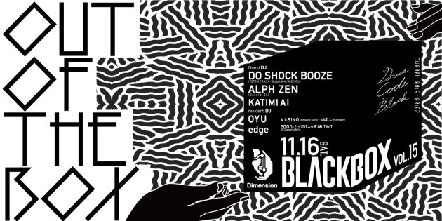 内部構造を見る事が出来ない密閉された機械装置をBLACK BOXと呼ぶ。2016/01に産声をあげたテクノパーティー・BLACK BOX 、今回より既成概念の枠(箱)を破る、飛び出す、という新たなスローガン(OUT OF THE BOX)を掲げ、BLACK BOXの第2章が始まる。DO SHOCK BOOZE氏、ALPH ZEN氏、KATIMI AI氏を招聘し、次のステップへの幕が開ける。
