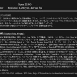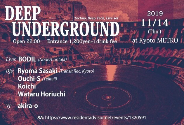 Currently he is playing in an underground techno/house party『Connected Underground』,『Deep Underground』,『yelltail』, all held in "Kyoto Metro" that is legendary night club in this historical city.