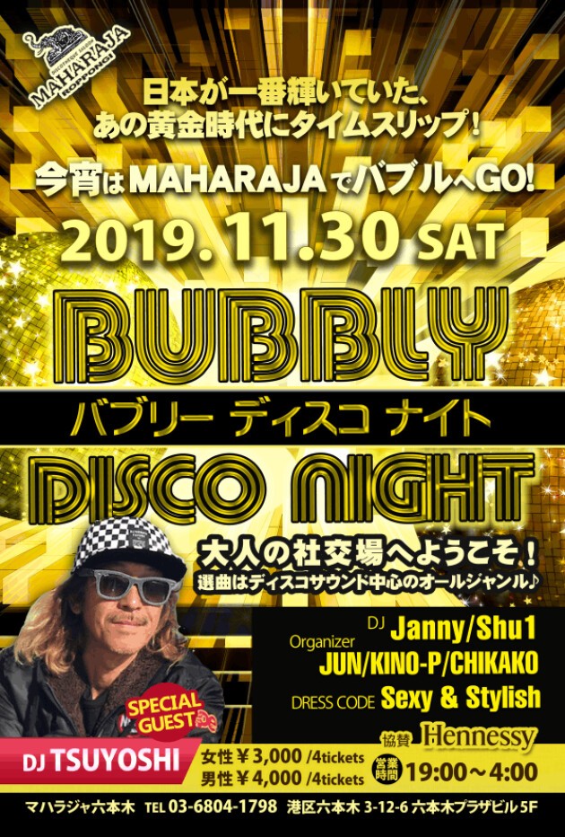 大人の社交場へようこそ!MAHARAJAが誇る黄金イベント「BUBBLY DISCO NIGHT」!
