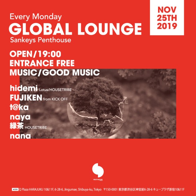 第3月曜日のGLOBAL LOUNGEは都内各所でDJプレイをするhidemiがオーガナイズ。