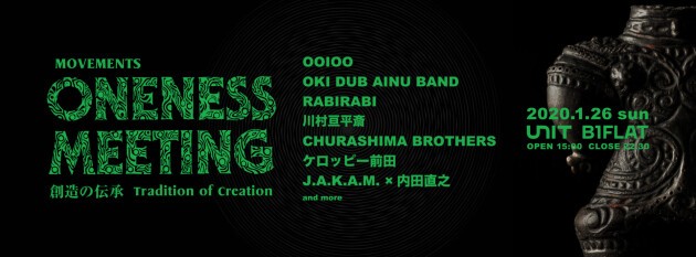旧暦新年翌日の1月26日、ボアダムスのYoshimiO率いるバンドOOIOOを筆頭に、北海道からアイヌの民族楽器トンコリをベースに新たな伝統を開拓するOKI DUB AINU BAND、沖縄からDJ Nu-doh & Sinkichiから成るCHURASHIMA BROTHERSなど熱いスピリットを持ったアーティストが代官山に集まります。