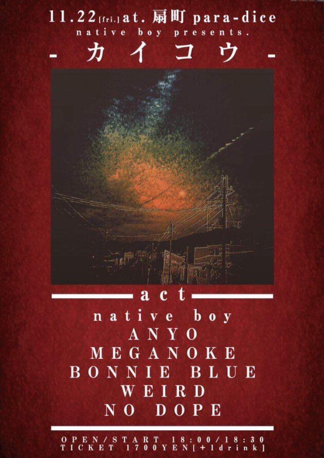 Native Boy presents: Meganoke and Bonnie Blue from the US make their Osaka debut with local support from Native Boy, Anyo, Weird and No Dope