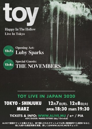 耽美と無機質が共存する独特の世界観を持つトーイ、一夜限りのスペシャルライブを開催!! シューゲイザー、ポスト・パンク、アシッド・フォークなど様々なエッセンスを吸収しながら進化を続ける彼ら。アルバム・デビュー前からNMEの「今聴くべき100のバンド」に選出され、デビューから約2年足らずでサマーソニックに出演し、初来日を果たす。英ロックバンドのトラヴィスは自身の楽曲「ムーヴィング」で「今日は高速道路でトーイを聴かなきゃ」と歌っており、ミュージシャン達からもその才能とサウンドセンスが支持されている。幻想的なボーカル、そして奥行きを感じさせる楽器音が奏でるステージは、まるで夢の中にいるような錯覚に陥るほど。