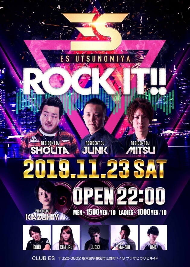 宇都宮クラブシーンを極めたDJトップ3集結!DJ JUNK / DJ SHOUTA / DJ MITSU PICK UP DJには水戸からDJ KAZUHIYが参戦! 実力派DJの熱き思い「ROCK IT!!」見逃し厳禁!