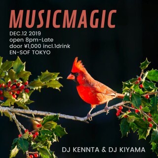 渋谷EN-SOF TOKYOにて毎週木曜日開催されている『MUSIC MAGIC』。ハウスを軸にダブ、ルーツ、ラバーズ、アフロ、ファンク、ソウル、ラテン、ブラジル、ジャズファンク、ロック、ニューウェーブ、80's等の新譜を中心に珠玉のレコードを厳選しプレイしている。ResidentのDJ KIYAMAは78年よりDJを開始し現在も都内のクラブ/バーを中心に精力的な活動を行なっている。これまでにJ WAVEやFM TOKYOのラジオ番組制作をはじめ、伝説のAIR FM、渋谷FMの開局に携わり、宇多田ヒカルのリミックスや楽曲のリリース等ダンスミュージックの発展に大きく貢献してきた。DJの中でも楽曲の知識は群を抜きハードディガーとしても知られるがショッピングモール等の商業施設、企業のレセプションパーティー、有線のアダルトコンテンポラリーまでコンセプトに合わせた選曲をこなす。レコードの扱いは非常に繊細でアーティストや楽曲に対する深い愛情とリスペクトを感じずにはいられない。