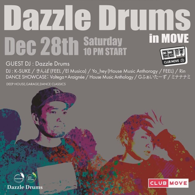 年末の最終土曜日は東京よりアンダーグラウンドなハウスフリークやコアなパーティーフリークやダンサー達の間でも絶大な人気を誇る "Dazzle Drums" が昨年に続き登場。