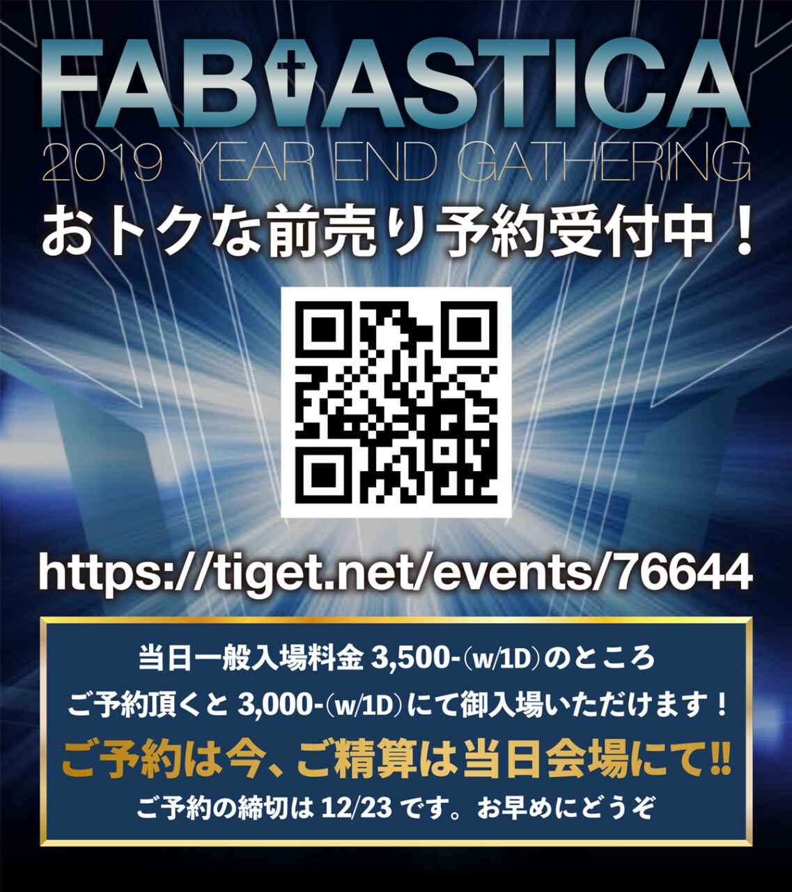 この上なくアガる↑↑ハイパーエモーショナルなバイブスがダンスフロアに満ち溢れる!東海パーティーシーンの金字塔FABTASTICAが12.30の大晦日イヴに開催決定!ヘッドライナーは世界にその名を馳せる我らがスーパー・レジェンドYOJI BIOMEHANIKA!その他FABTASTICA総帥GEORGE-Sを筆頭に東海エリアのハードサウンド・シーンを支える精鋭達が渾身のプレイでパーティーをヒートさせる!