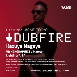 WOMB ではお馴染み、テクノシーンのトップアーティストである DUBFIRE が、昨年に続いて 1年ぶりにWOMB へ帰還。オープニングアクトには、MUTEKなどでも素晴らしい活躍をみせる Kazuya Nagaya が登場する。