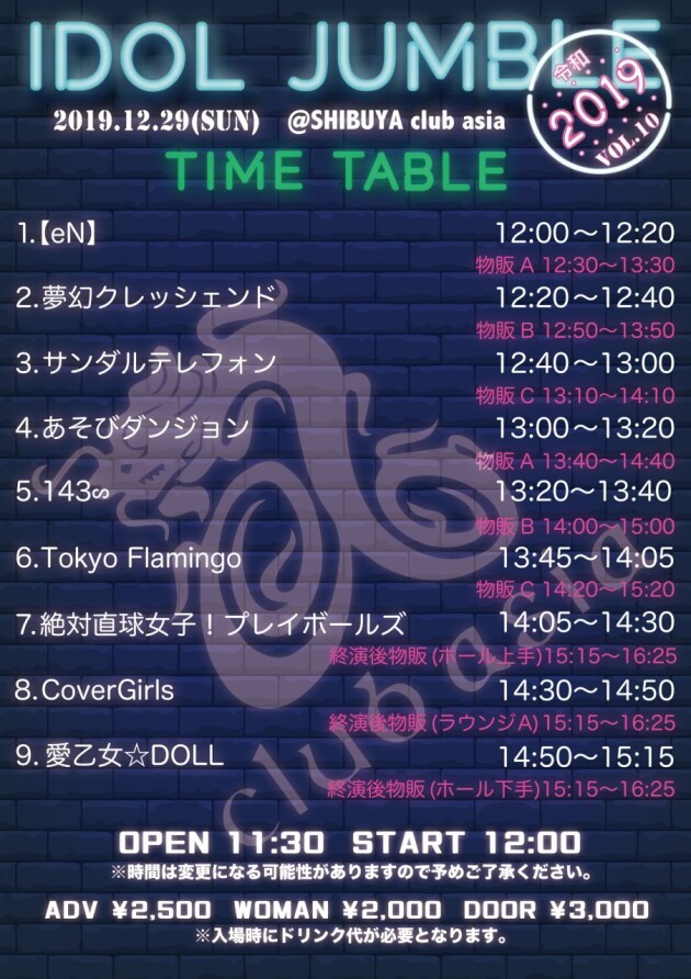 【出演】絶対直球女子!プレイボールズ / 愛乙女☆DOLL / Tokyo Flamingo / あそびダンジョン / サンダルテレフォン / 143∽ / 夢幻クレッシェンド/【eN】