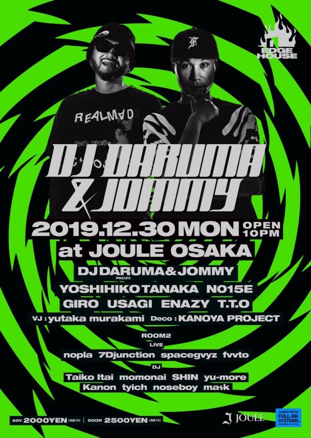 2019年、世界でもっともHotなダンスミュージックと称されるHouse/Tech Houseを軸に、シーンの最前線で活躍中のDJ DARUMA(PKCZ®)&JOMMYという”エッジの効いた”二人による"EDGE HOUSE"の大阪第2弾開催決定!