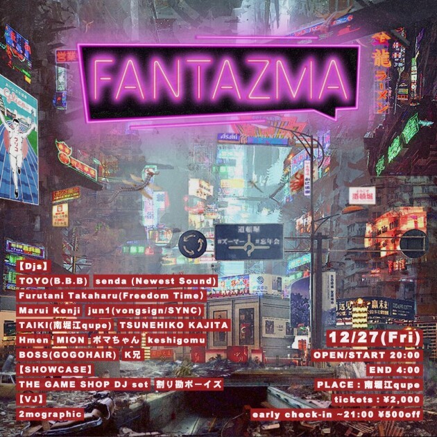 【ROCK / Techno /Drum'n'Bass / dubstep etc,,,】様々なジャンルで活躍する古き良き時代の継承者と今も最前線で活躍するDJ達が、アメ村に位置するclub DROPでかつて開催されていたイベント【FANTAZMA】の元に再集結!!