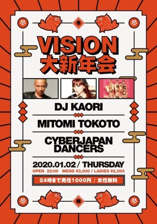 リリースしたMIX CDのトータル・ セールスが460万枚を超え、日本が世界に誇るフィメールDJとして活躍するDJ KAORIを筆頭に、グラビアやTVなどにも引っ張りだこのCYBERJAPAN DANCERSと、CYBERJAPANのプロデューサーでありDavid Guettaも認めるハウスDJ、MITOMI TOKOTOがVISIONの2020年OPENNING PARTYを飾る!