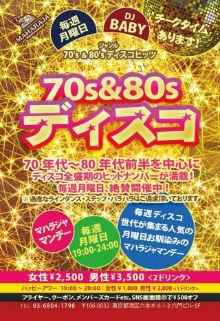 毎週月曜日は70~80年代のダンスクラシックスDAY!アバ、アース・ウィンド・アンド・ファイアー、チャカ・カーンetc…懐かしのディスコが好きな方に大人気です♪
