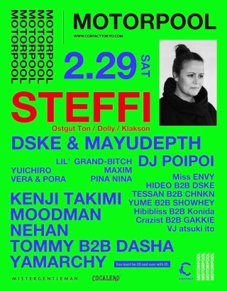 Berghain / Panorama BarのレジデントDJとして活躍し、〈Ostgut Ton〉や自身のレーベル〈Dolly〉、サブレーベルの〈Klakson〉から良質な作品をリリースし、注目を集めるベルリンの女性アーティストSteffiをゲストに迎える。